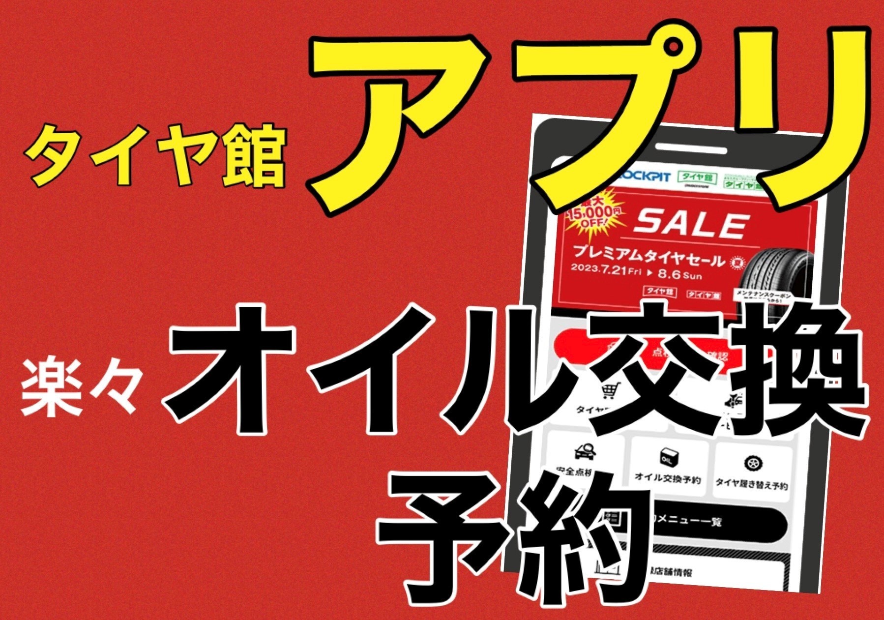 タイヤ館アプリからの楽々オイル交換予約、是非ご活用ください。