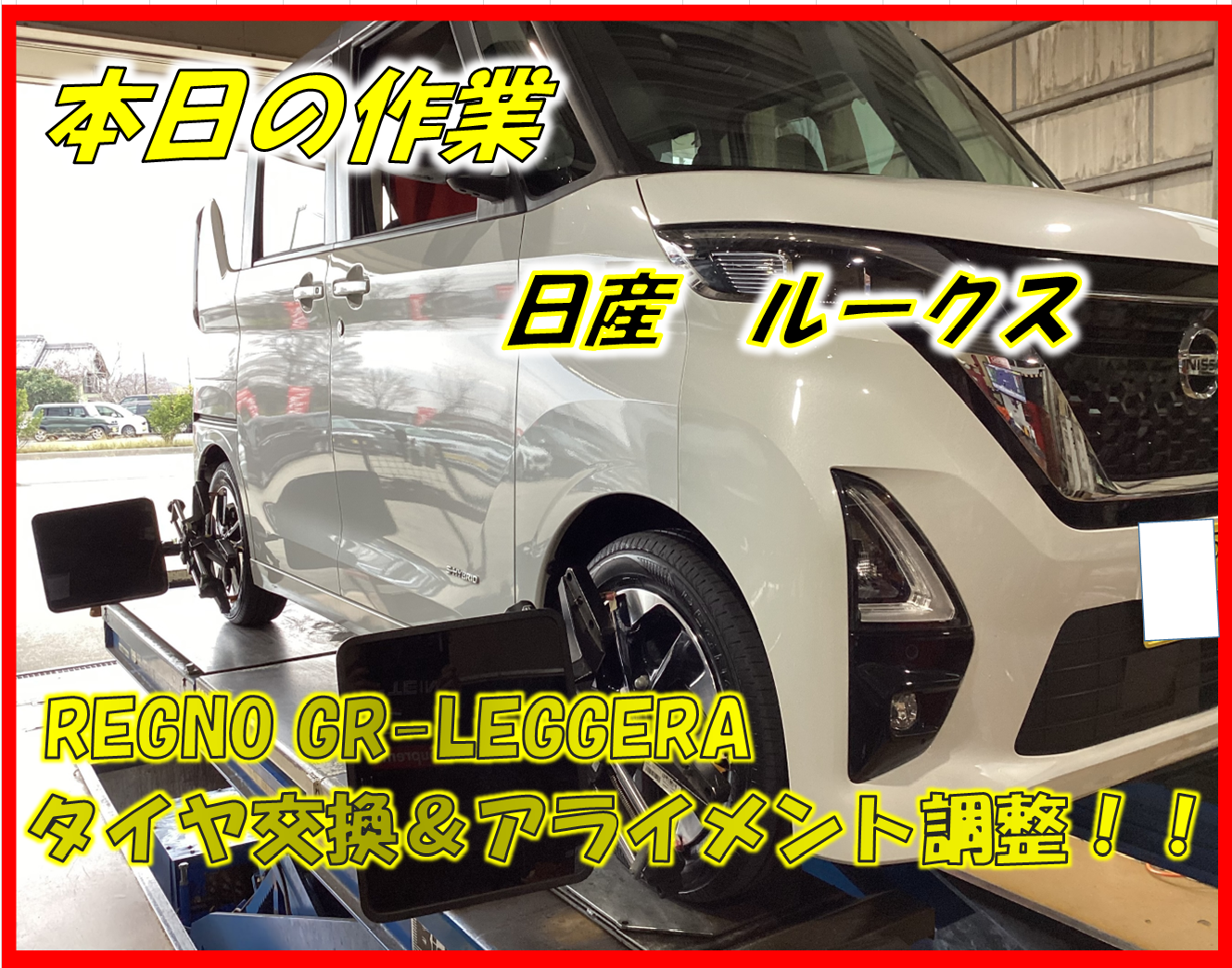 日産 ルークス REGNO GR-LEGGERA 155/65R14 タイヤ交換&アライメント調整!!
