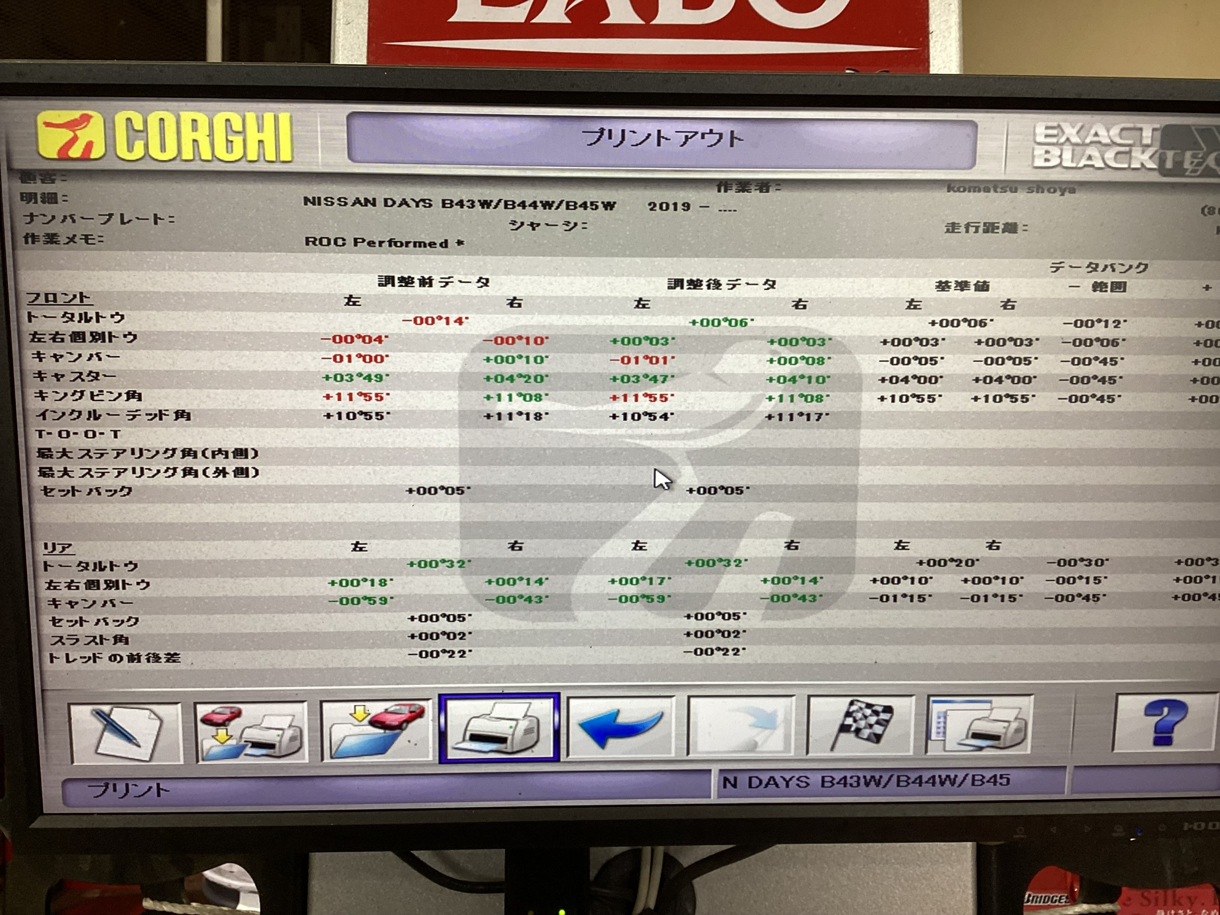 タイヤ交換をさせていただきアライメント調整もやっていただき測定の数値を載せておきます。