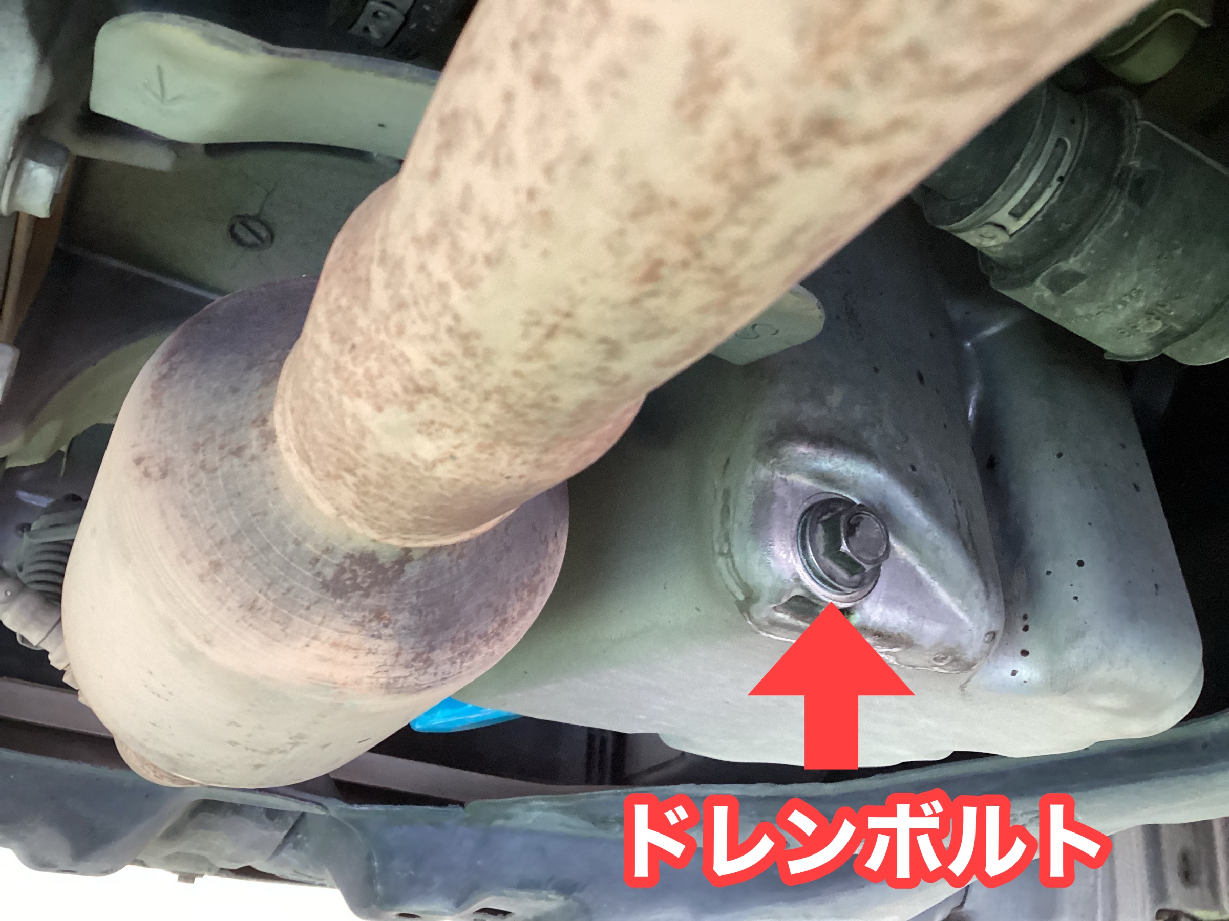 車をリフトであげたら、ドレンボルトを外してオイルをドバァっと抜いていきます。
