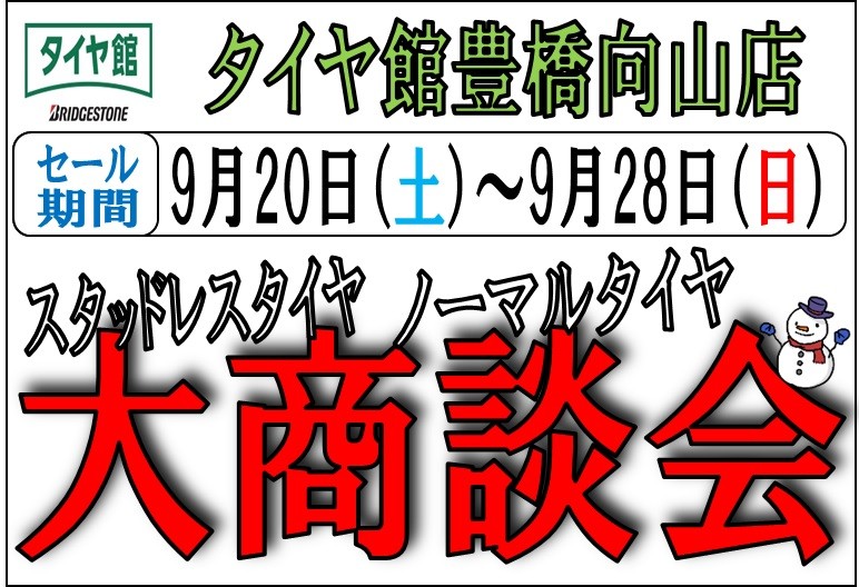 【タイヤ大商談会開催中】9月20日(土)から9月28日(日)まで