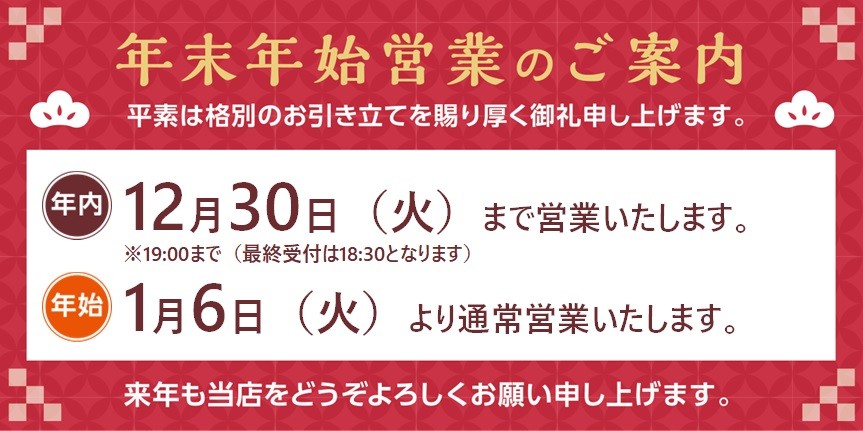 年末年始営業日のお知らせ ポスト 2025年12月27日 お世話になっております。 豊橋市向山町にありますタイヤ館豊橋向山です。 年末年始の営業日のお知らせです。 12月30日(火)営業日 12月31日(水)定休日 1月1日(木)定休日 1月2日(金)定休日 1月3日(土)定休日 1月4日(日)定休日 1月5日(月)定休日 1月6日(火)営業日 1月7日(水)定休日 1月8日(木)営業日 上記の通り営業致しますので よろしくお願い致します。 タイヤ館 豊橋向山 住所:440-0864愛知県豊橋市向山町字池下5-5 電話番号: 0532-62-2620 カテゴリ:お知らせ 担当:鈴木