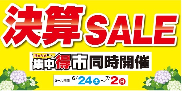 6/24(土)~7/2(日)まで開催の【決算セール】まであと3日!