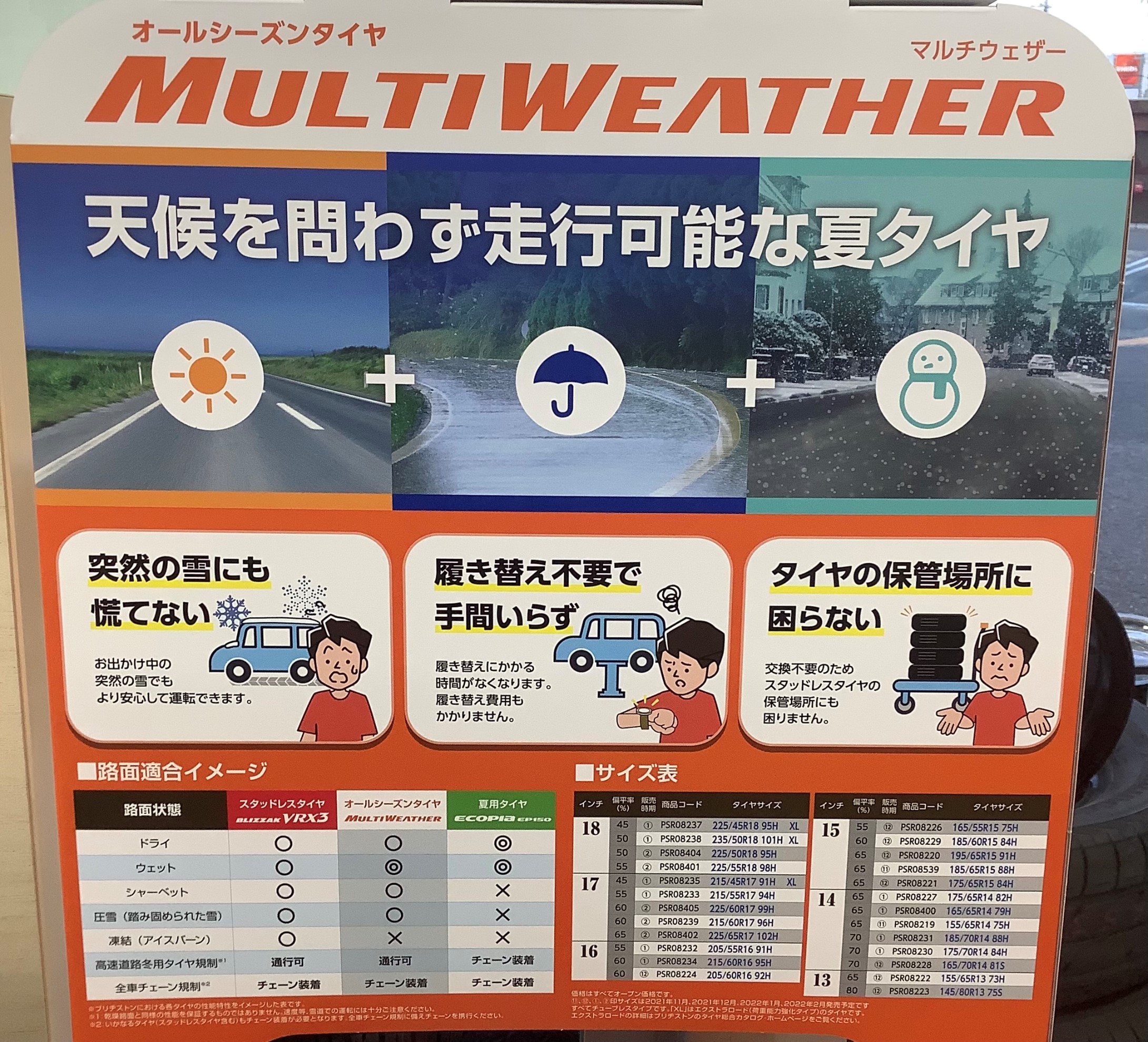 MULTIWEATHERは、履き替えが不要で、タイヤの保管場所や保管料金がかかりません!!