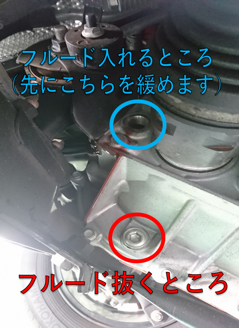 それぞれのドレンボルトを外して・・・・・・ オイルを抜く & 入れていきます。