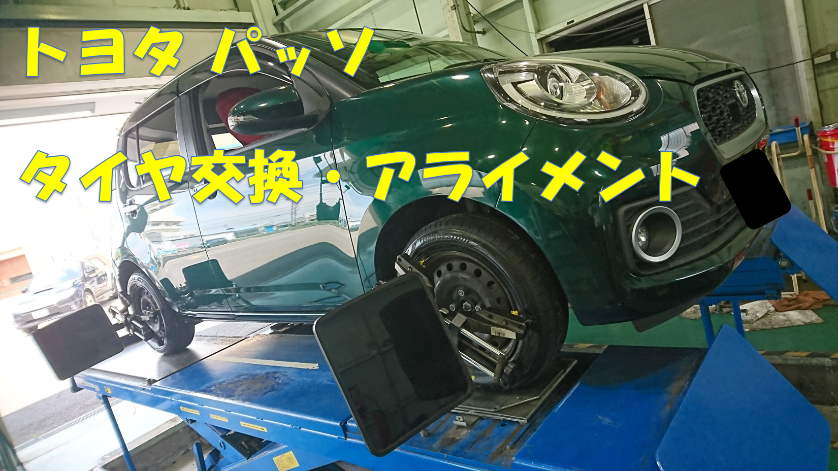 トヨタ パッソ(M700)タイヤ交換・アライメント作業!