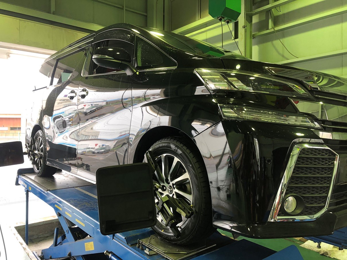 本日はヴェルファイアのタイヤ交換&アライメント作業をご紹介いたします!