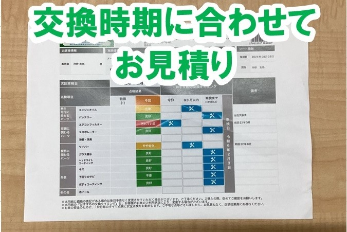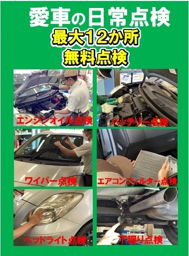 エンジンオイル・バッテリー・ワイパーを始め 各種点検させていただきます。