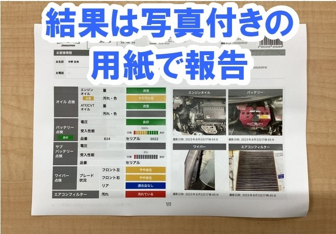 点検結果は、お客様に点検用紙をお渡しさせていただきます。