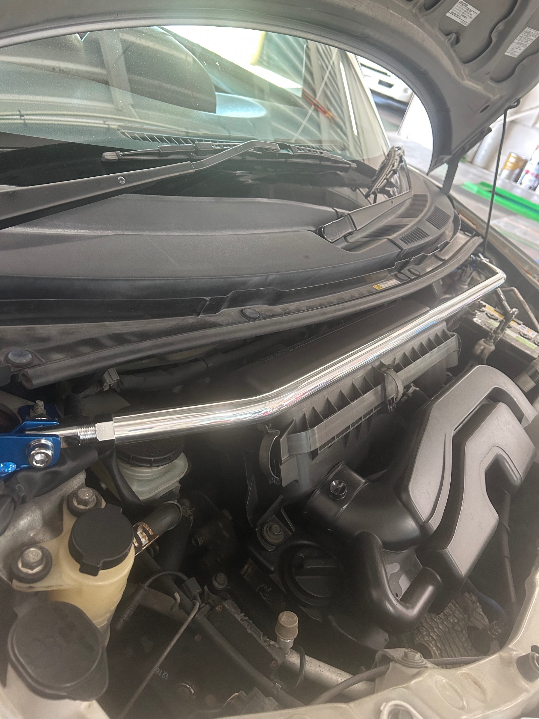 タワーバーは、車のサスペンション上部、ストラットタワーと呼ばれる部分を連結するパーツで、ボディの剛性を高める効果があります(^^)
