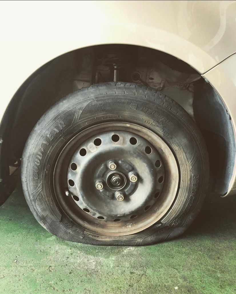 こちらの車両はパンクは1本だけでしたが残りの3本もワイヤーが出かかっていて危ない状態でした‼︎作業時に手袋をしていてもワイヤーが引っかかってしまったので、もしパンクされた時にワイヤーが出ていたら極力触らないようにしましょう‼︎素手で触ってワイヤーが刺さったら大変です(*_*)