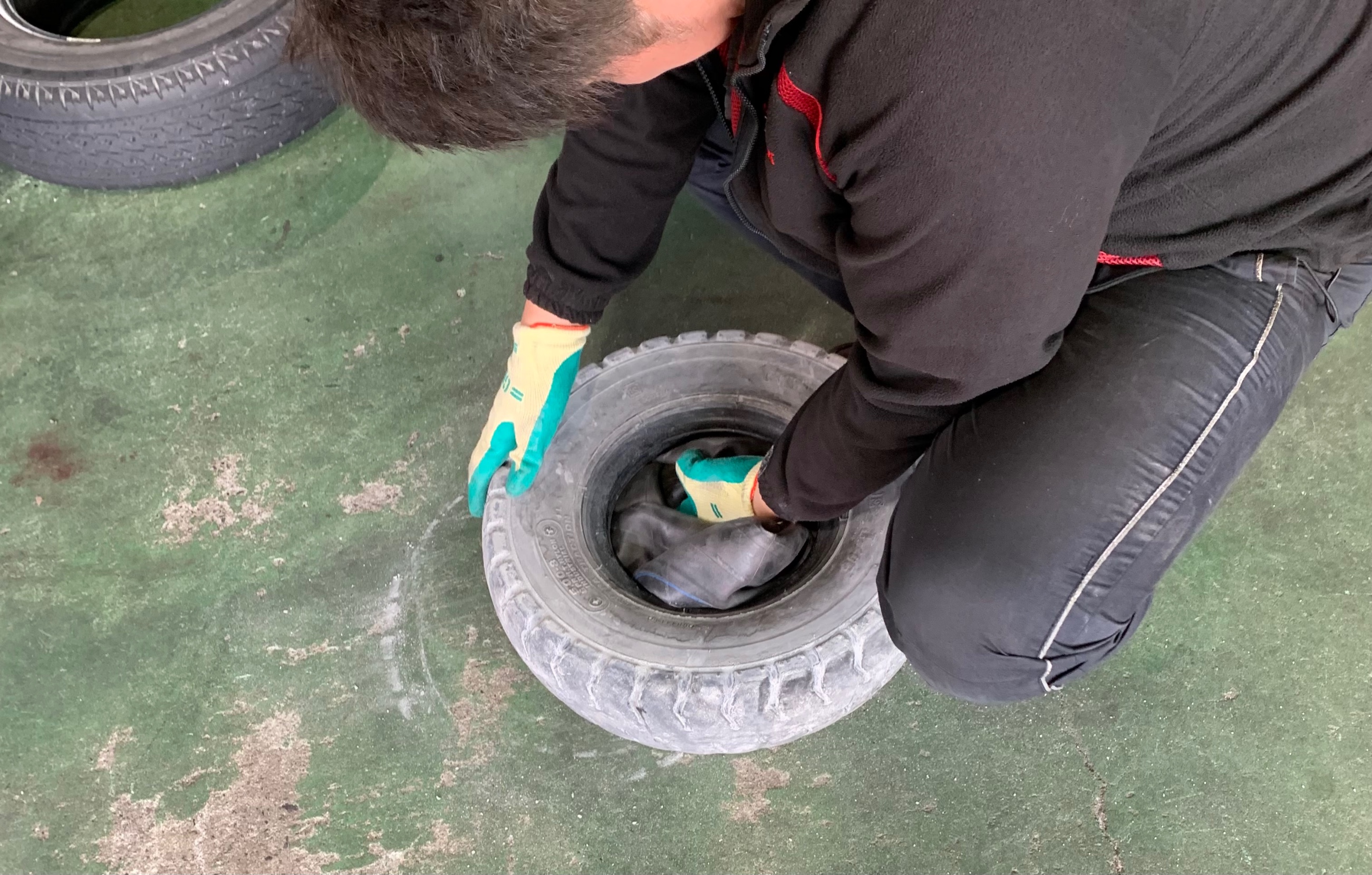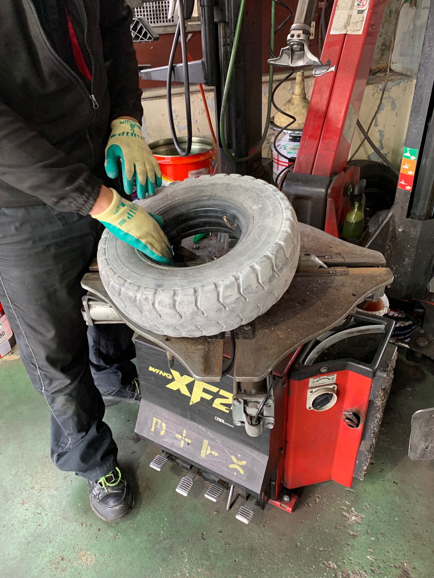 リフトのタイヤチューブ交換 ポスト 2025年10月27日 本日はリフトのタイヤがエアー漏れしているようという事で点検依頼がありました。 調べてみるとチューブからエアー漏れ 現在はチューブレスが主流になってますが一部フォークリフトや農耕用車両にはチューブタイプの物もあります。 今回は傷が大きすぎて修理できなかったのでチューブ交換します!! チューブ、フラップをしっかり入れ込んで チューブ交換完了です!!! フォークリフト、大型車、農耕用まで幅広く対応してますのでお気軽にご相談下さい! お待ちしております。 カテゴリ:タイヤ関連 その他商品・サービス
