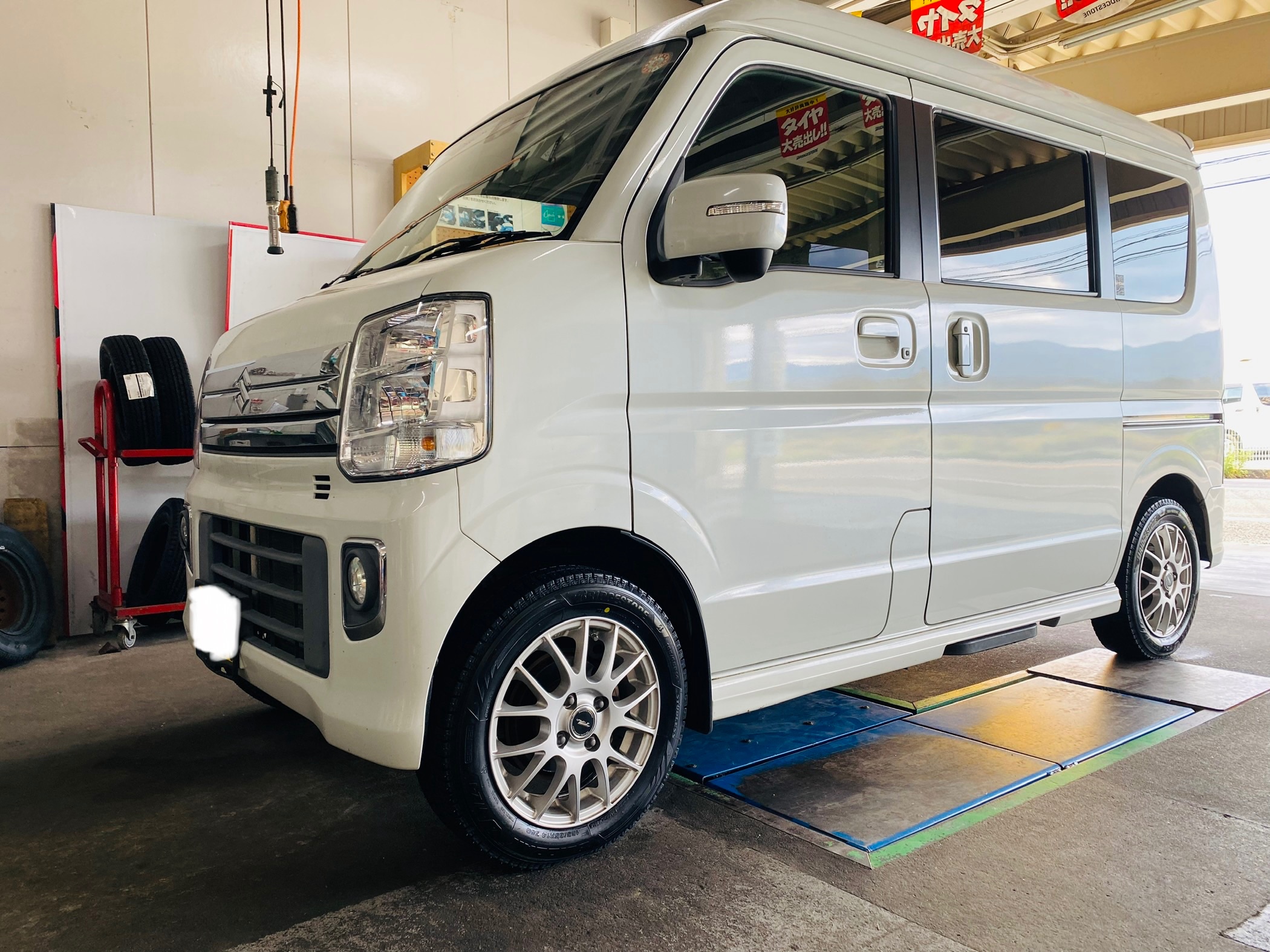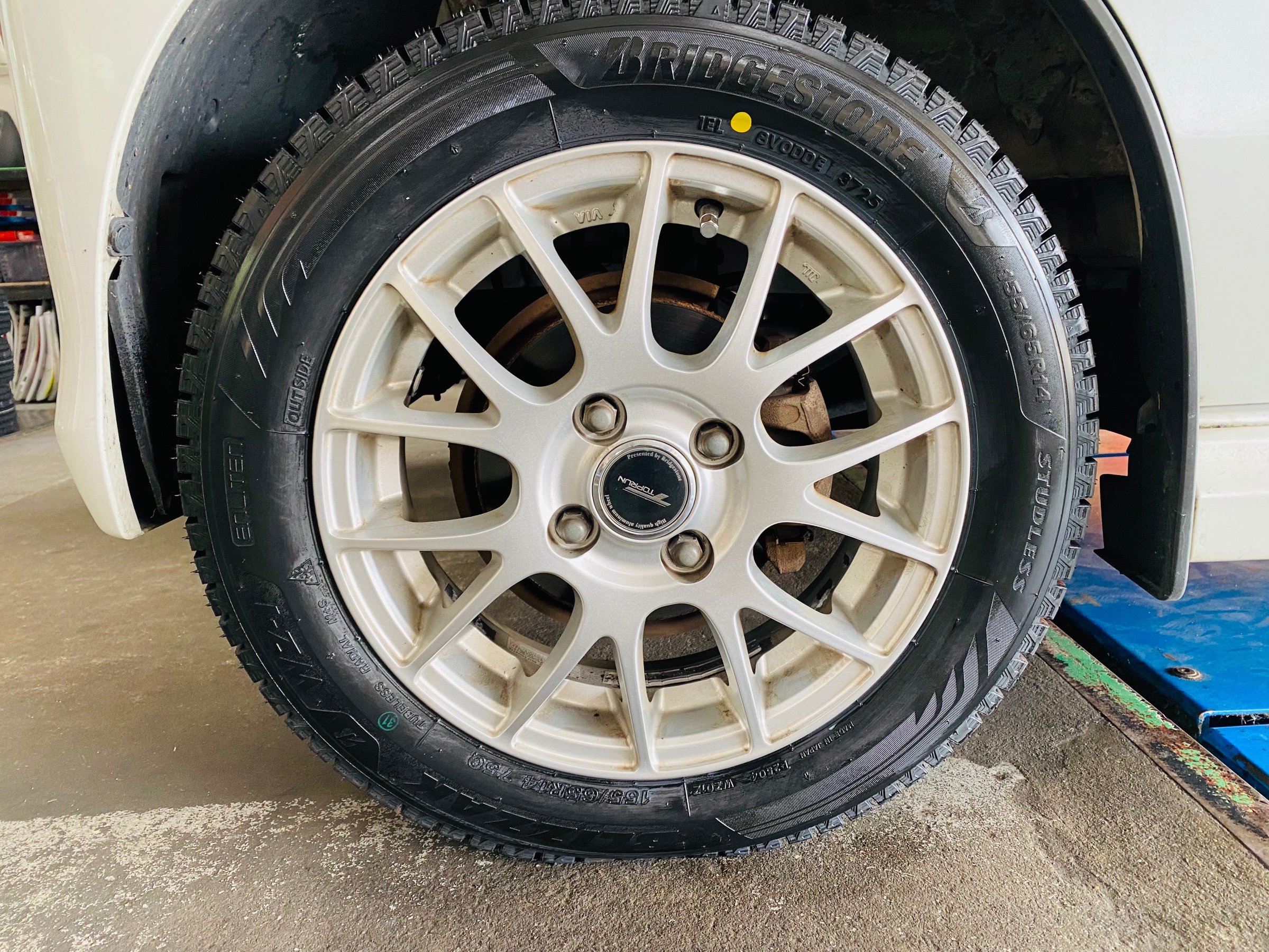 スタッドレス取り付け ポスト 2025年11月3日 本日はスズキのエブリイにブリヂストン新商品のスタッドレスタイヤWZ-1の取り付けをさせていただきましまた‼︎ 普段乗りからお仕事でも、お車を使用するので12月の混雑も考え早めの装着をされたかったそうです! 1ヶ月早めに付けても溝はそんなに減りませんし、出来れば新品の場合は慣らし走行で100㌔〜200㌔は走った方がタイヤの性能が発揮しやすいので新品交換をお考えの方は特に早めの取り付けがおすすめです♪