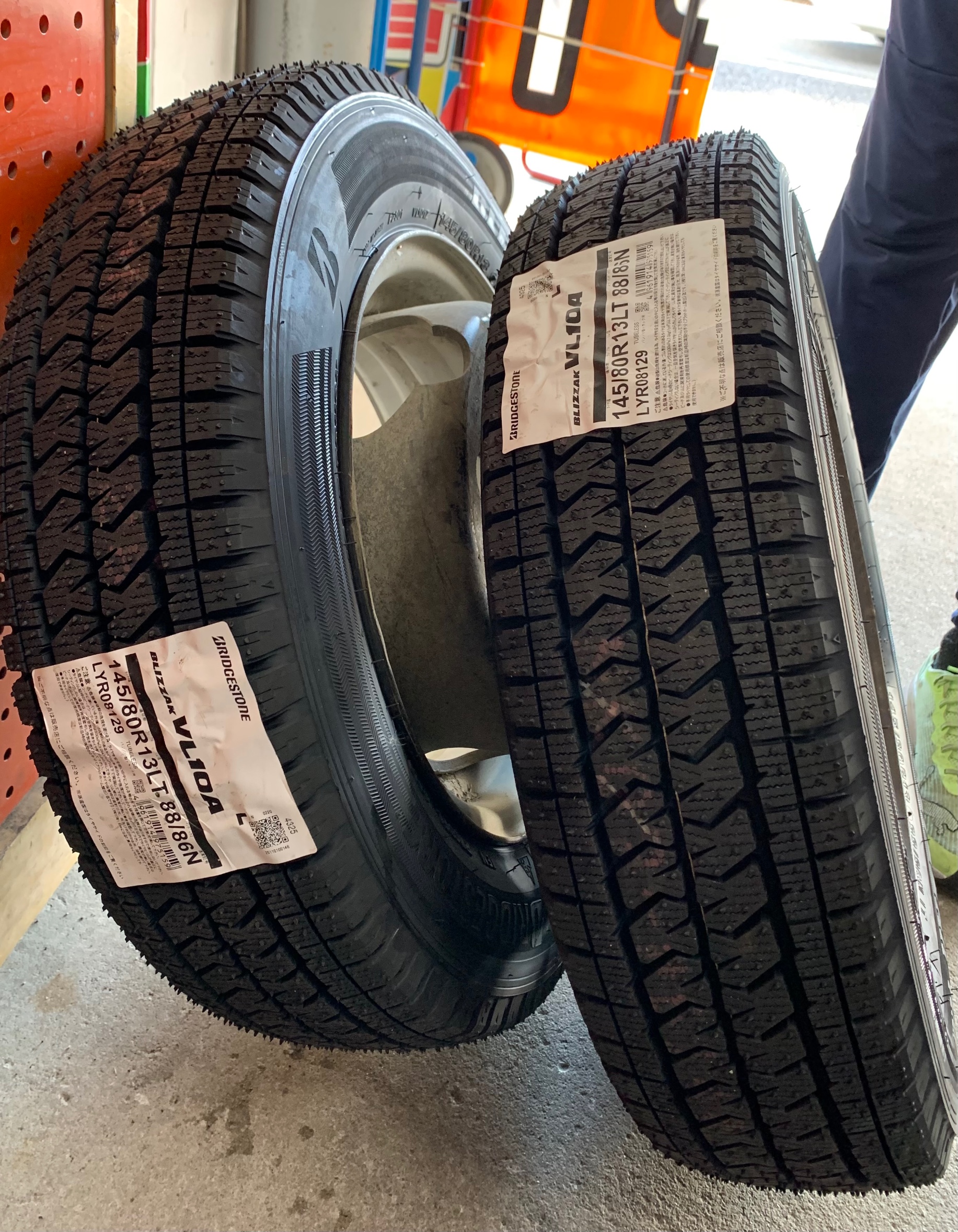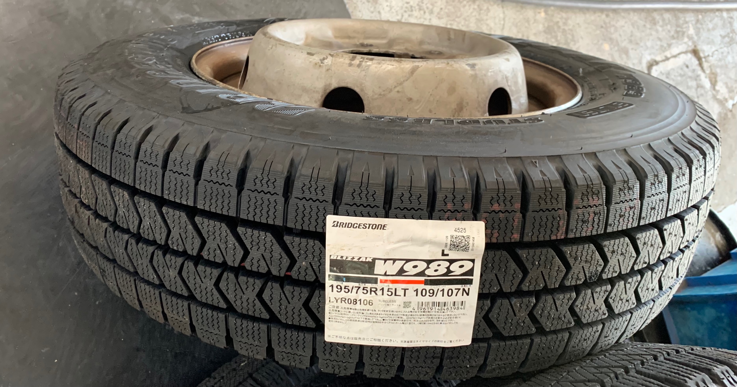 エルフスタッドレス交換 ポスト 2025年12月22日 本日はエルフのスタッドレスタイヤ交換を行いました。 昨年度使用していたものは交換時期にきていたので、新しいタイヤへ交換させていただきました。 フロントタイヤはW989 195/75R15 109Nを2本 リアタイヤはVL10A 145/80R13 88Nを4本 こちらを取り付けさせていただきました。 まだまだ気温は暖かいですが、いざという時に備えて早めの冬タイヤ着用をオススメいたします。 カテゴリ:タイヤ関連 商品情報