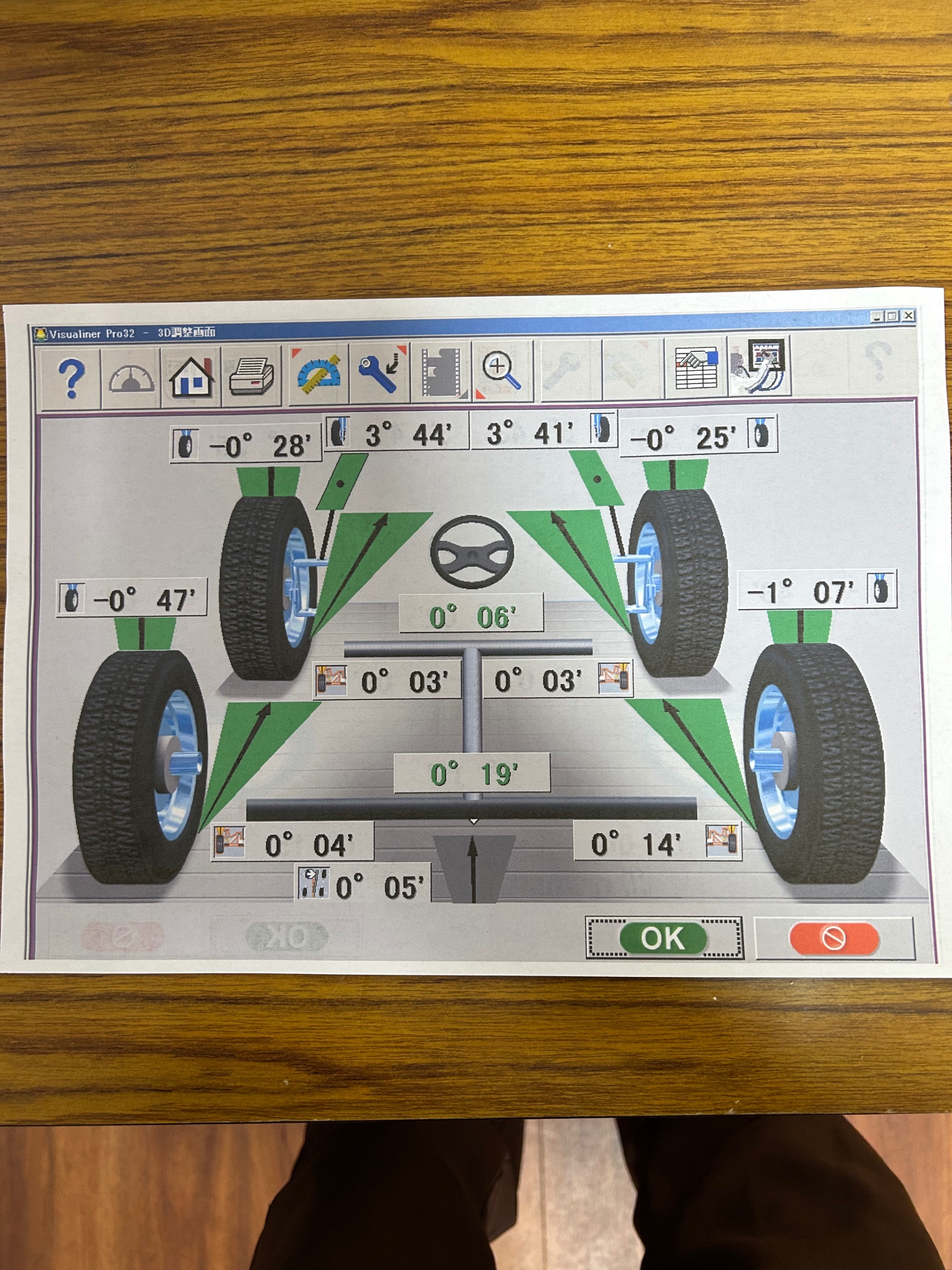 測定してみると右側が完全にトーアウトして左側も基準値内には収まってますがトーインになっていました(>_<)