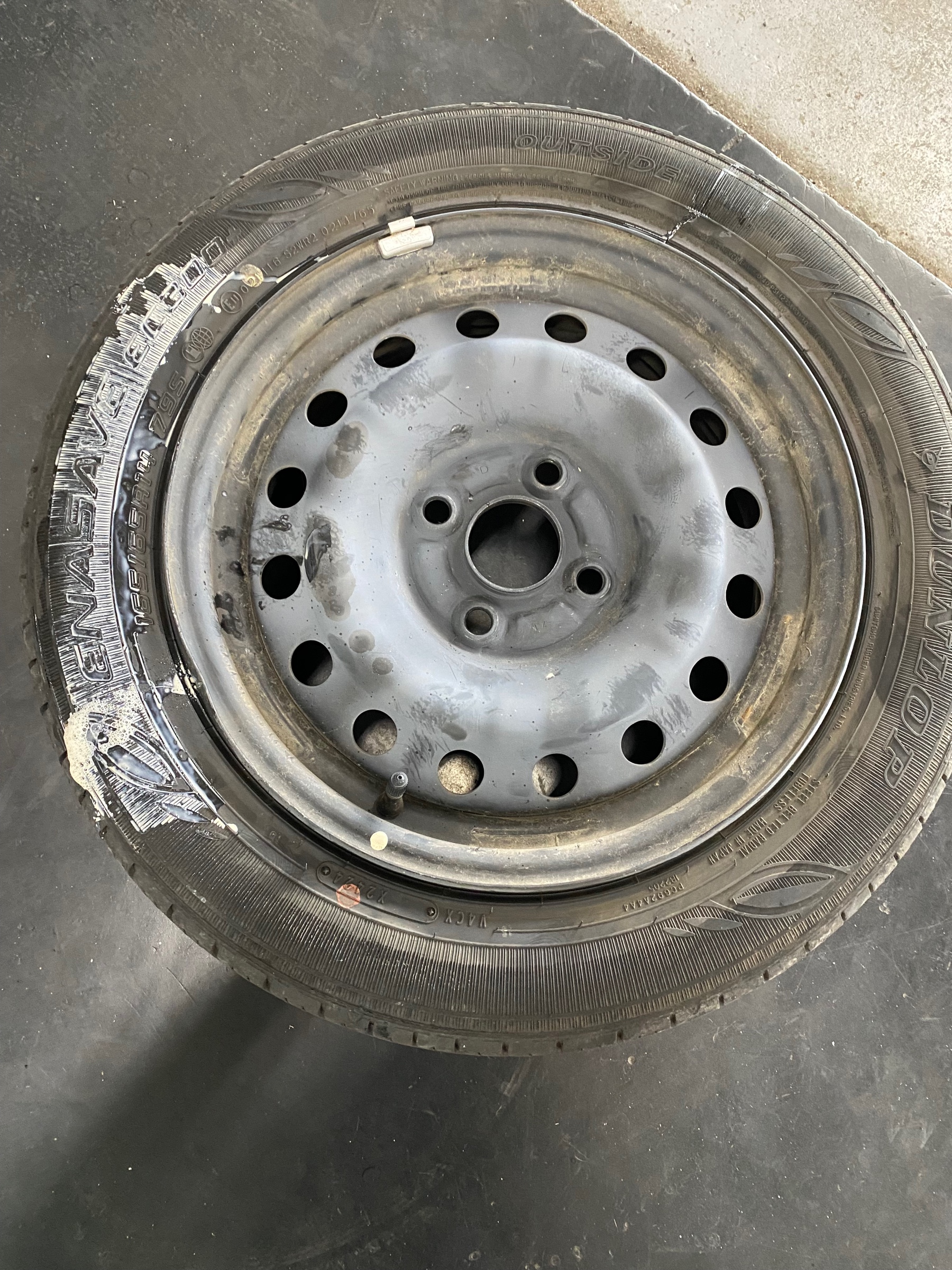 本日はパンクにてお客様がご来店されました。 ホイール付きのスタッドレスタイヤをお持ちだったので、ご自身で付け替え来店されました。 外して来られたタイヤはバーストして修理不可能な状態 BRIDGESTONE ニューノ165/55R15へ1本交換する事となりました。 タイヤ交換の際に、オイル交換の時期もき...