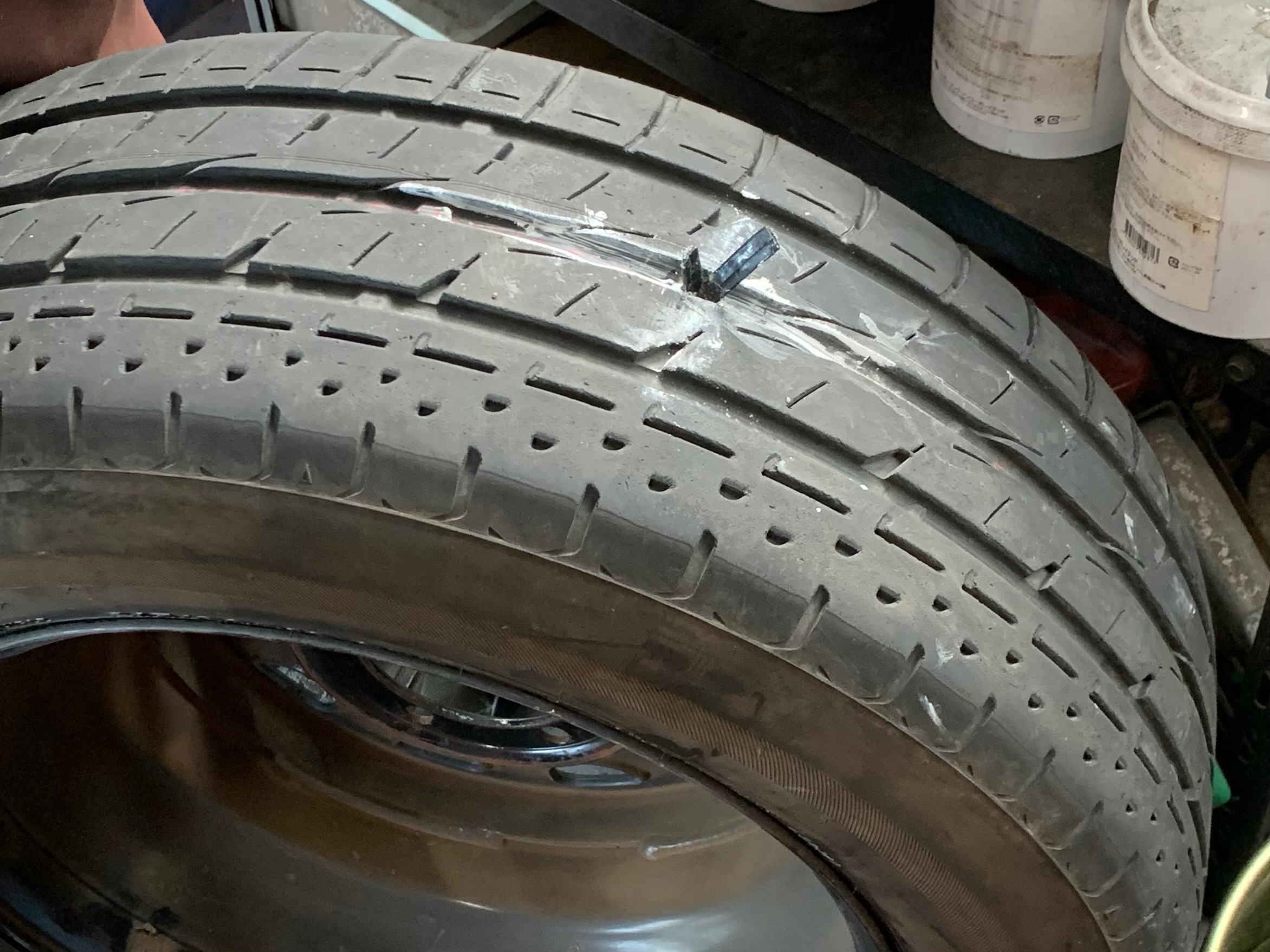 こちらの車両はパンクは1本だけでしたが残りの3本もワイヤーが出かかっていて危ない状態でした‼︎作業時に手袋をしていてもワイヤーが引っかかってしまったので、もしパンクされた時にワイヤーが出ていたら極力触らないようにしましょう‼︎素手で触ってワイヤーが刺さったら大変です(*_*) まずは空気...