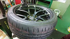 こんにちは、タイヤ館津の長田です。 以前スタッフ日記で紹介したRE-71RSの交換作業風景です。 やっぱりタイヤが太いですね!POTENZAということで組むのに苦労しました・・・(-"-;A ...アセアセ お車は中古で購入されたみたいなのでアライメントもオススメさせていただきました。 結果はやはり!ズ...