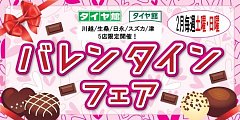 2月イベントのお知らせです♪ 2月の毎週(土・日)にバレンタインフェアを開催します(^^♪ 期間中にご購入のお客様にはチョコをプレゼント☆ 小さなお子様やご家族連れなど大歓迎!(^^)! 心より、ご来店をお待ちしております。