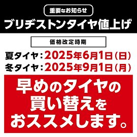 【値上げまであと3日!】ブリヂストンタイヤの値上げが発表されました。