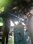 平日、休日ともにオイル交換予約受付中です。 待ち時間も少なくすみスムーズに交換が出来ます。 お電話でのご予約が出来ますのでお気軽にご連絡ください。 写真は下からオイルを抜いているところです。
