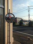 出入り口にポールミラーを設置しました! 見えにくいところもこれでバッチリ! 出入りの際に歩行者もしっかり確認できますね。 皆様のご来店心よりお待ちしています。