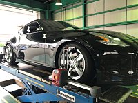 ブリヂストンからの依頼でまたまたアライメント調整♪ 日産 フェアレディZでリアの足廻り修理後の確認に(^_^)v しっかり基準値に調整できましたのでご安心を! 車高も下がっていて、見た目もバッチリきまっていました☆