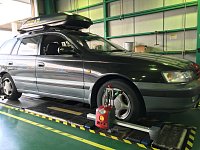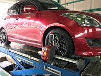 以前に当店でスタッドレスとホイールセットをご購入いただいたお客様です(^O^) アライメントも調整済だったのですが、最近どこかにタイヤを乗り上げたのか「違和感がある…」 ということで再測定することに!! 確かに基準値から少しズレていたので、もしかしたらタイヤに何か強い衝撃があたったのか...