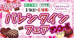 本日でバレンタインフェア1週目終了(^O^) 週末の2/17~2/18☆に開催します。 お楽しみに☆ ご来店の方にチョコをプレゼント♪ タイヤ・オイル・バッテリーなどの点検に是非、お子様連れでお越しください。
