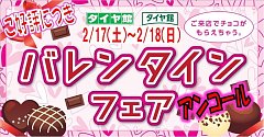 ご好評につきまして、バレンタインフェア☆アンコール開催します(^^♪ 週末のイベントとして、ご来店のお客様には日ごろの感謝を込め「チョコ」をプレゼント!! 2/17~2/18限定とさせて頂きますので、心よりご来店お待ちしております。