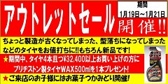 1/19~アウトレットセール開催中!! スタッフ一同心よりお待ちしております<m(__)m> この機会に是非!!タイヤ交換をご検討の方はご相談ください。