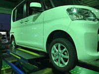タントでお越しのお客様にスタッドレス取り付けと一緒にCVTオイル交換も♪ 走行は3万キロ程度でしたので、ちょうど交換時期☆ これで燃費・加速の回復♪快適なドライブが楽しめると思います(^O^) 仕上げにアライメント調整でスタッドレスの性能を引き出し、万が一の雪道もより安心♪