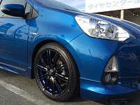 本日アクアにテインのハイテクと言うダウンサス取り付けと ウェッズスポーツSA54Rのホイールを取り付けさせて頂きました。 イイ感じに車高が下がりインチアップしてホイールのブルーと 車体のブルーがすごく似合っていました。 こだわりの愛車でドライブ楽しんでください。
