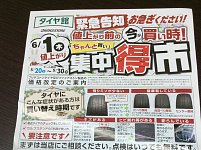 明日(20日・土曜日)から値上がり前の集中得一を開催致します! 6/1よりタイヤの価格が上がってしまいますので、交換するなら「今が買い時!」 タイヤ館ではお客様に合ったタイヤ選びをさせて頂き、「ちゃんと買い」のお手伝いをさせて頂いております♪ 在庫も豊富に揃えてお待ちしておりますので、...