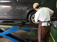 本日もタイヤ交換&アライメント調整作業やってます! お車はワゴンRでネクストリー 145/80R13に交換し、長持ちするように アライメント調整も同時にさせていただきました(^_^)v