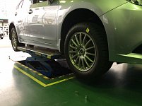 今回、マークXジオにレグノを取り付けさせて頂きました。 以前使っていたタイヤの内側が減っていたのでそのままタイヤ交換だけでなく アライメントさせて頂き、タイヤホイールの角度を調整して装着しました。 これでタイヤがきれいに減るので寿命が長持ち、さらにタイヤを適正な角度にすると 音も...