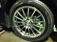 現行ティアナを納車したお客様にホイールセットを取り付けです。 純正16インチから17インチにチェンジ!! 215/55R17でレグノGR-XI☆ホイールもブリヂストン製CRS12 ボディ色によく映え、イメージがガラッと変わりましたね(^^♪