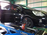 本日もアライメント調整中です(^^♪ アクアの4本交換後にアライメント調整です!!! タイヤは新商品NH100Cでタイヤが減りやすい街乗りにも対応♪
