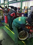 こんにちは!アルバイトの大仲です。 寒い中、ご来店ありがとうございます! 本日もタイヤ交換・アライメント調整作業をさせて頂きました。 ロープロサイズ(厚みが薄い)タイヤ交換って難しいんですよ…。 先輩達にしっかりと教えて頂き、一人でも交換出来るよう頑張ります!