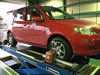 デミオにスタッドレス取り付けとアライメント調整!