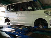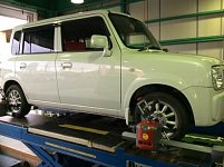 本日、ラパンでタイヤが縁石に当たってハンドルがずれてしまったとのことで ご来店されました。実際乗ってみるとハンドルがずれた状態でまっすぐ走る状態でした。 アライメント測定して、データーを見るとタイヤの角度がずれていました。 アライメント調整して試乗するとちゃんとまっすぐ走りました...