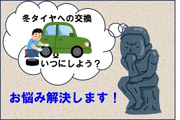 三重県 津市 松阪市 明和町 多気町 にお住まいの皆様 並びに当ブログをご覧のお客様 こんにちは! イオンモール津南 様 向かい 国道23号沿いにあります 【タイヤ館津】です! 愛車の冬準備、第二回目です。 スタッドレスタイヤへの交換はいつがいい? 11月10日頃からがおススメです。 夏用タイヤと...