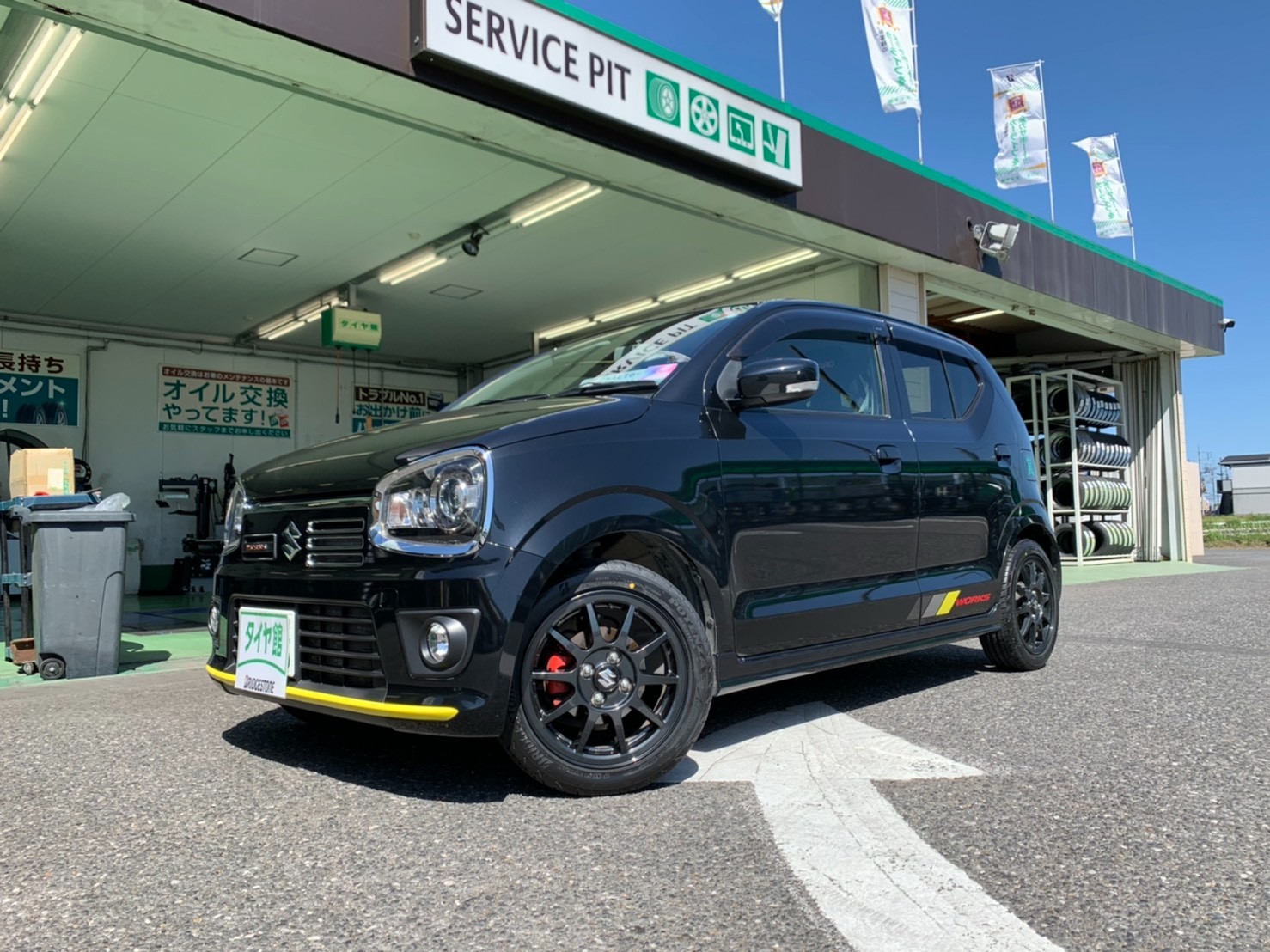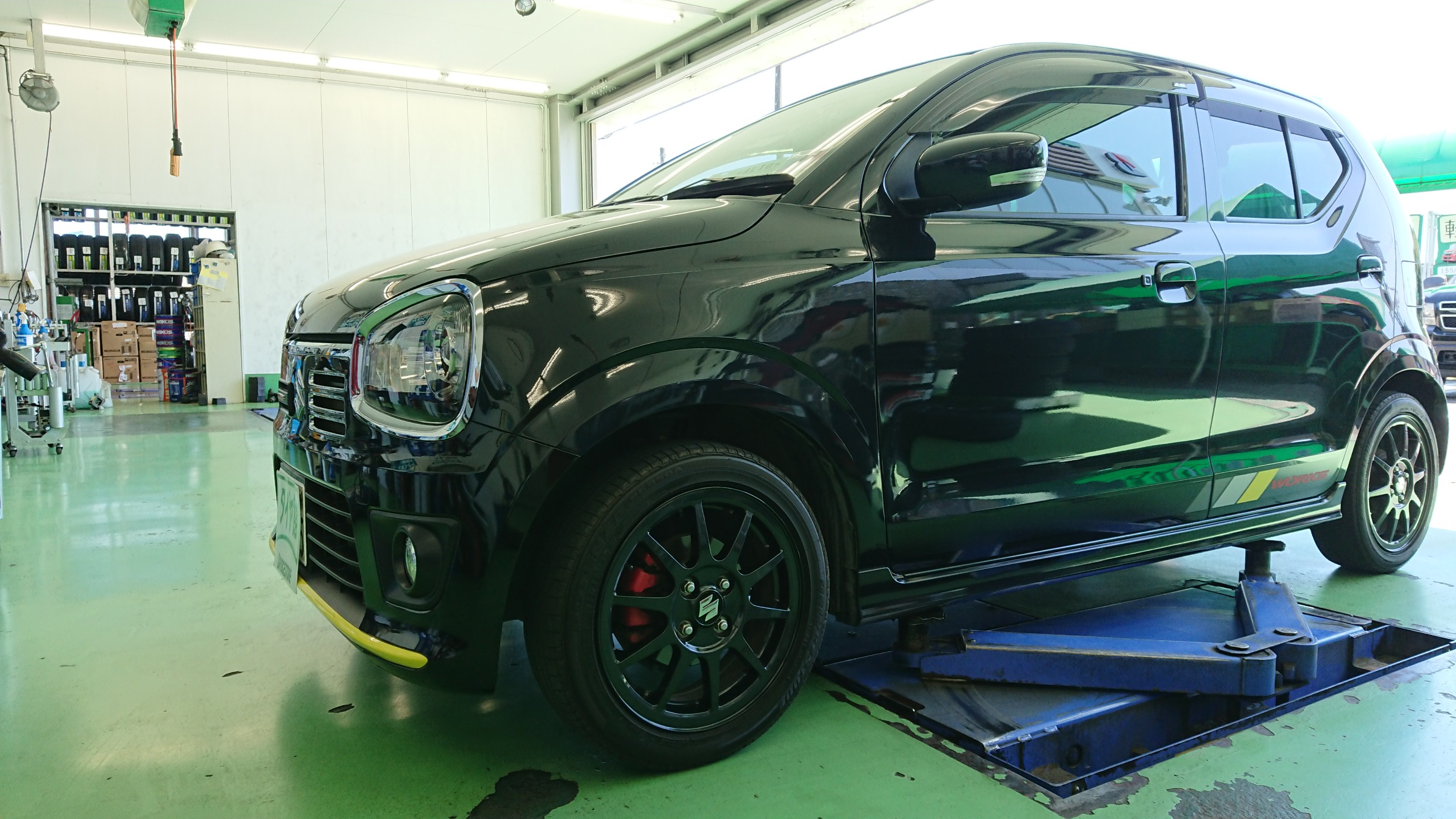 スズキ・アルトワークスのタイヤ交換・アライメント調整です!