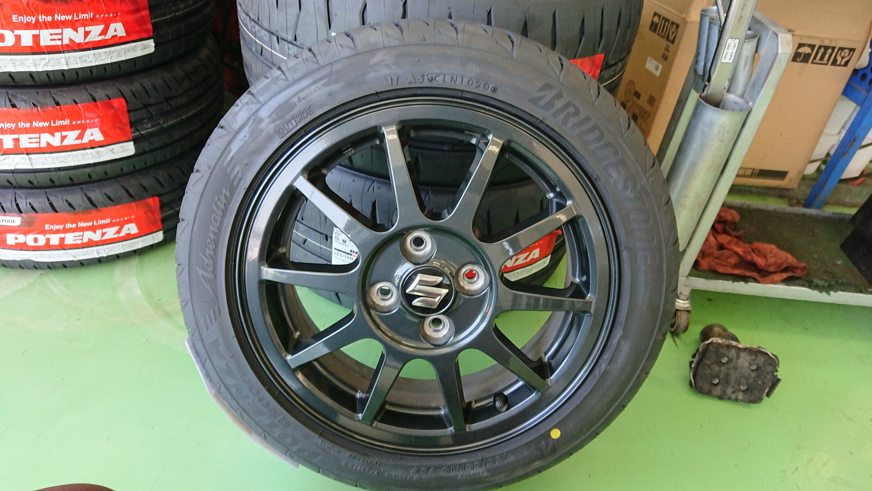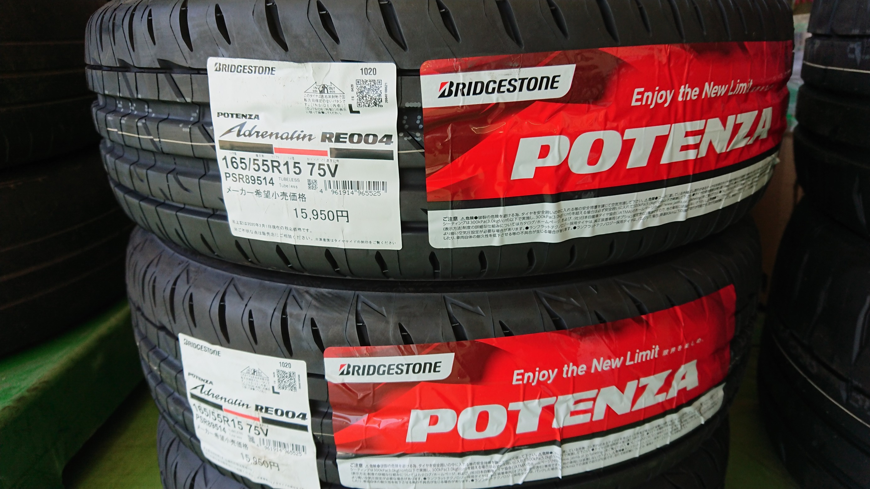 今回、取り付ける商品は 165/55R15 ポテンザ アドレナリンRE004です。