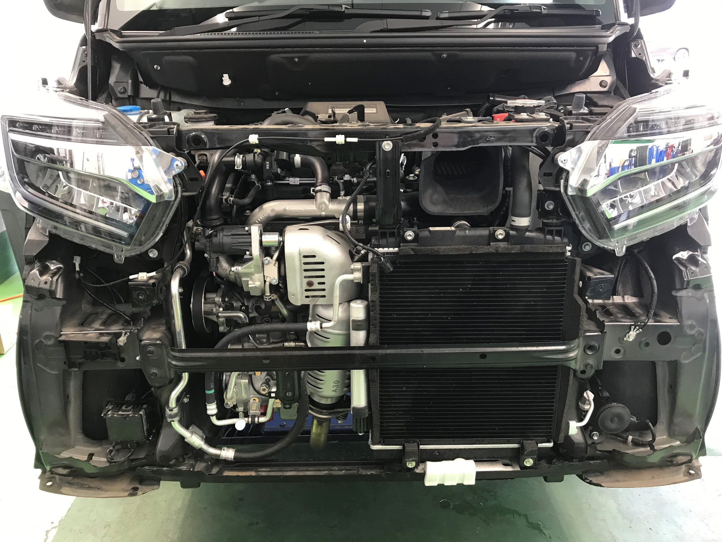 ちなみにN-BOXでホーンを交換する際には、↓のようにバンパーを取り外す必要があります。