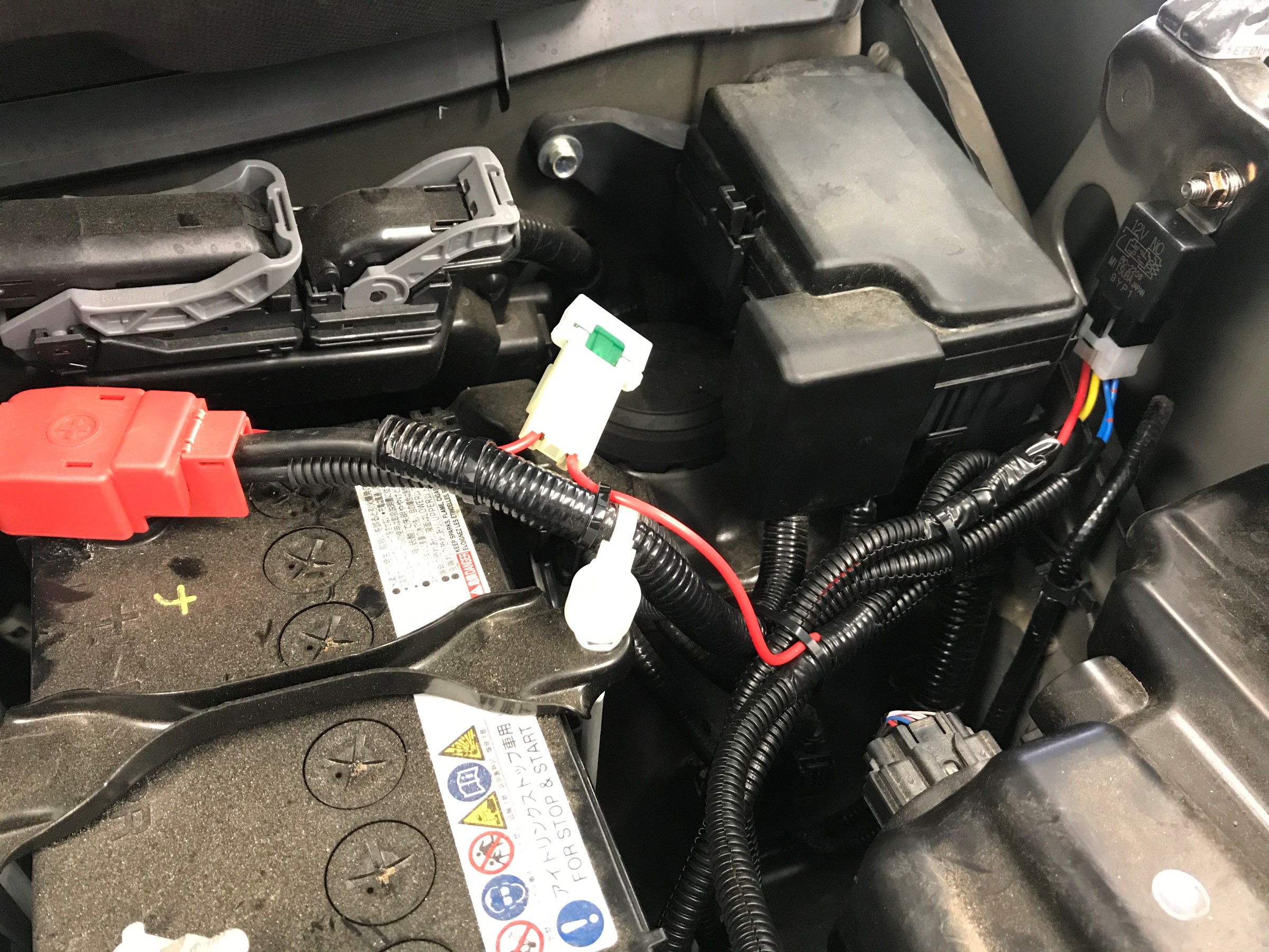 リレーはこのように配線・取付しました↓