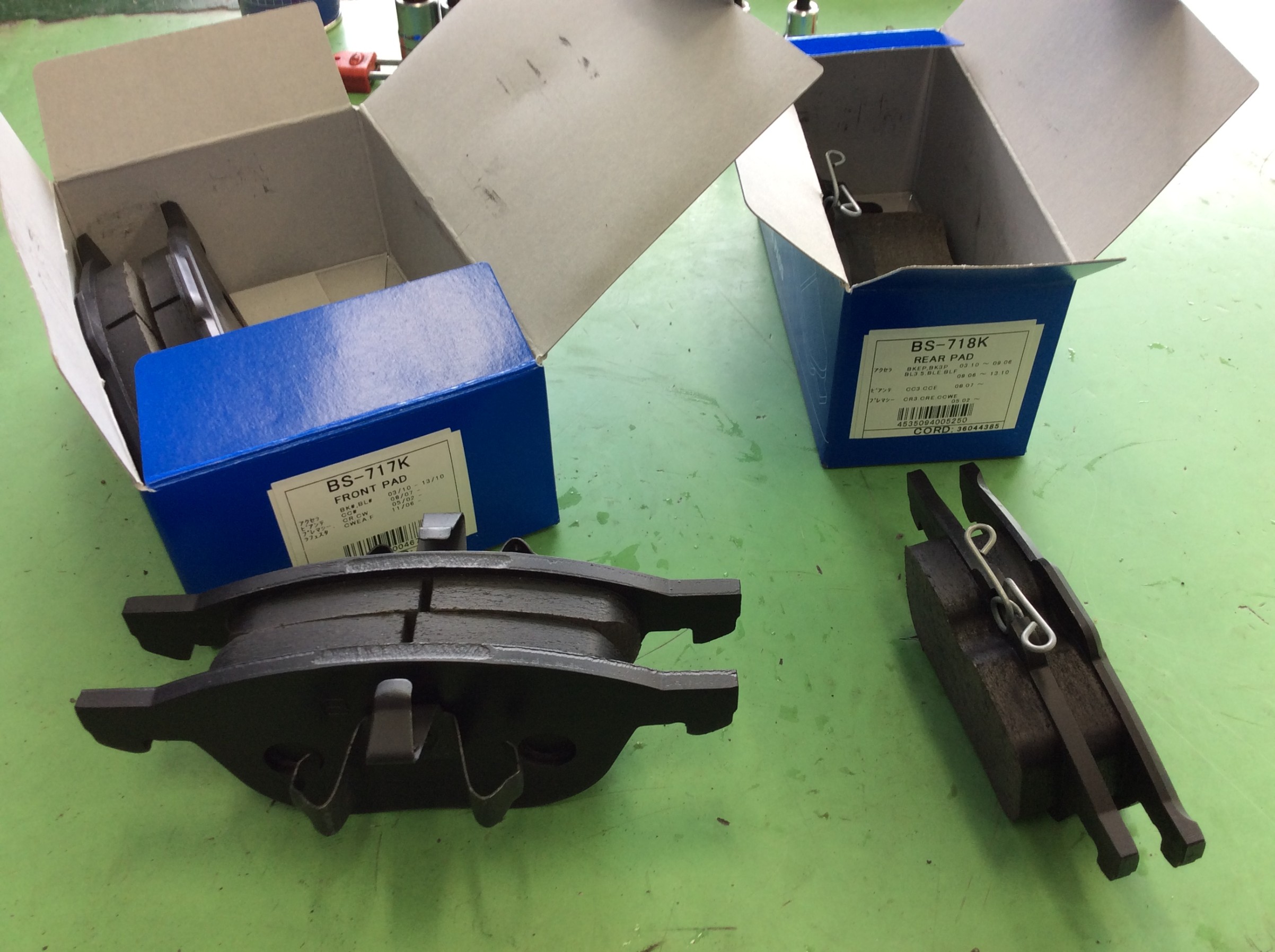 今回、取り付ける商品は アケボノ製ブレーキパッド、前後とも交換です。