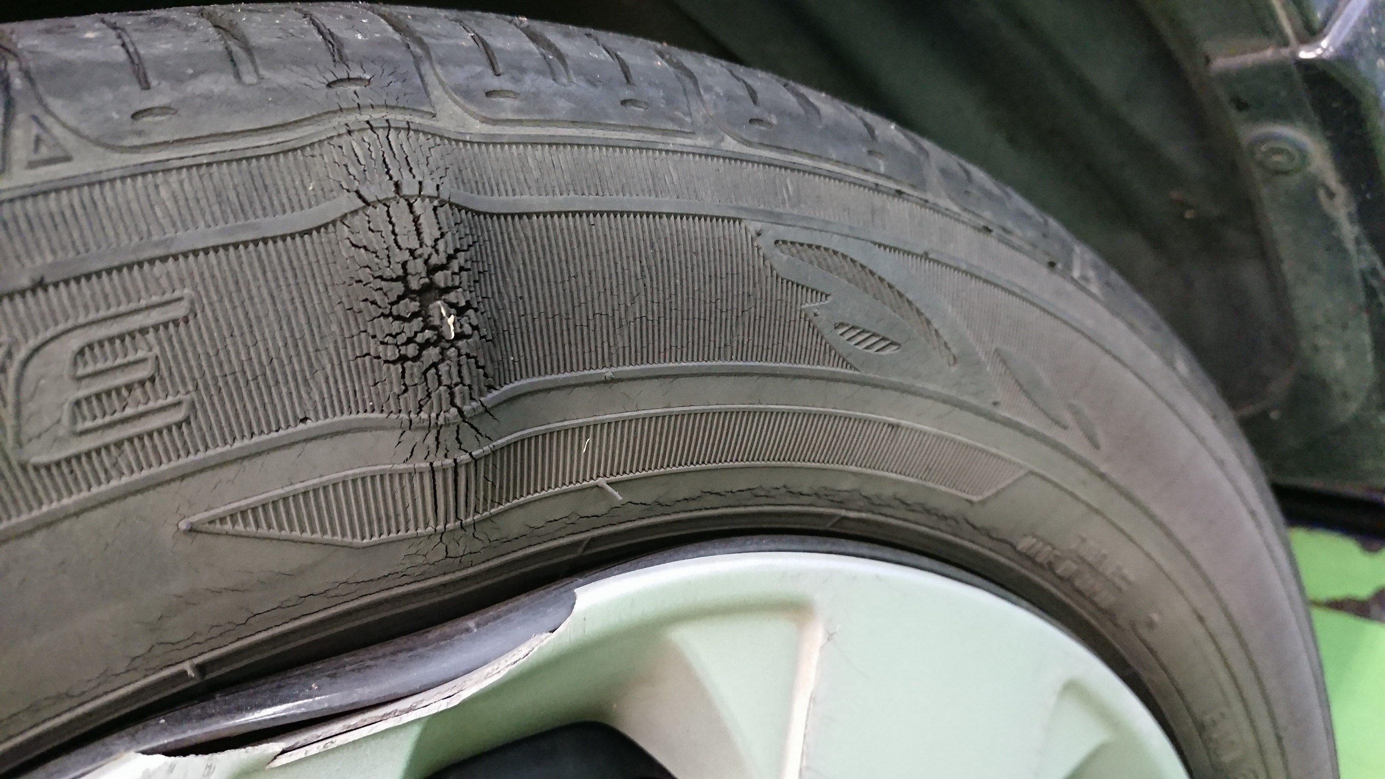 今回、T様は縁石に乗り上げてしまいホイールが曲がってホイールキャップも