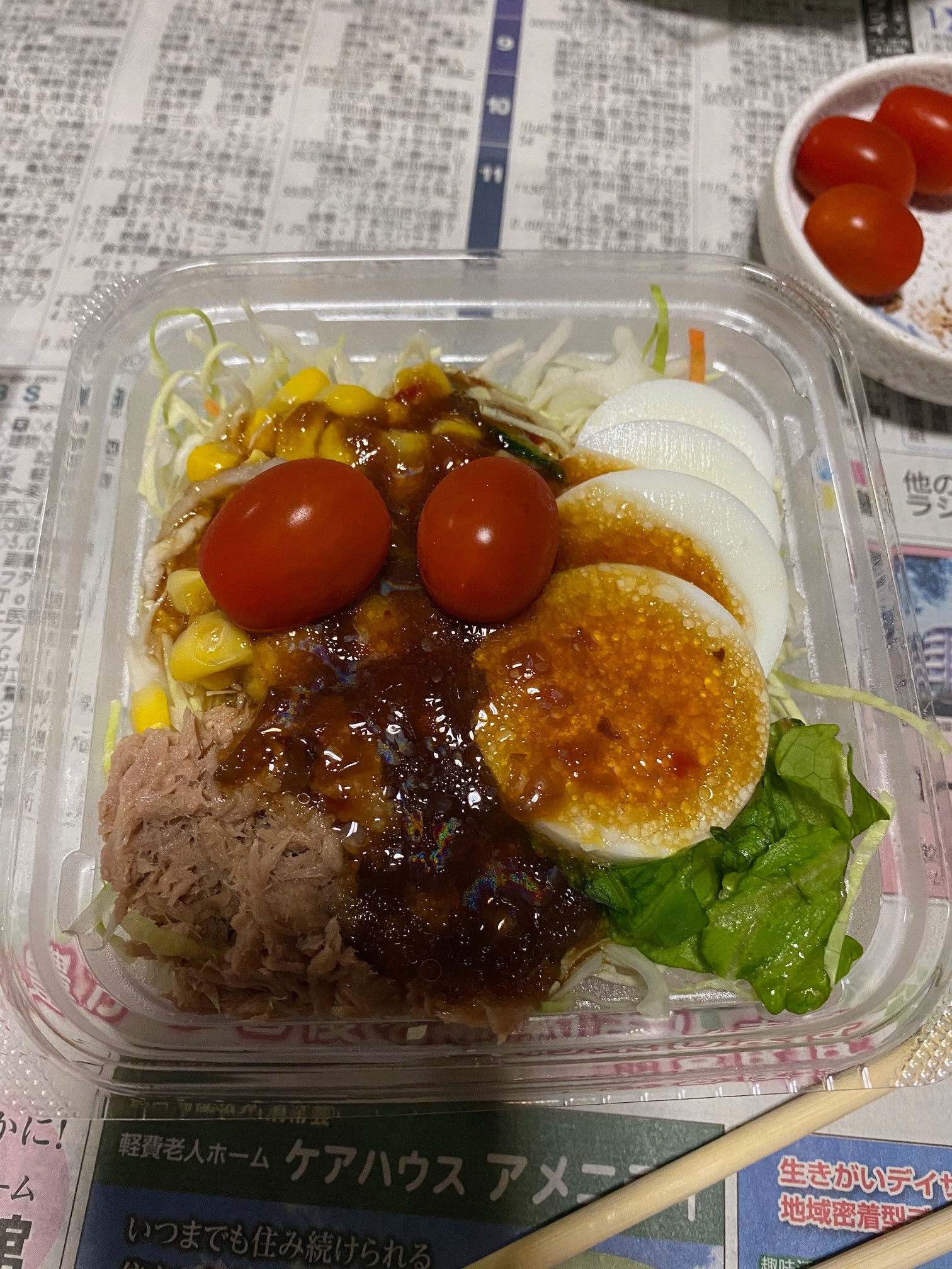 トマトをのせただけで、いつものサラダが鮮やかになります!!