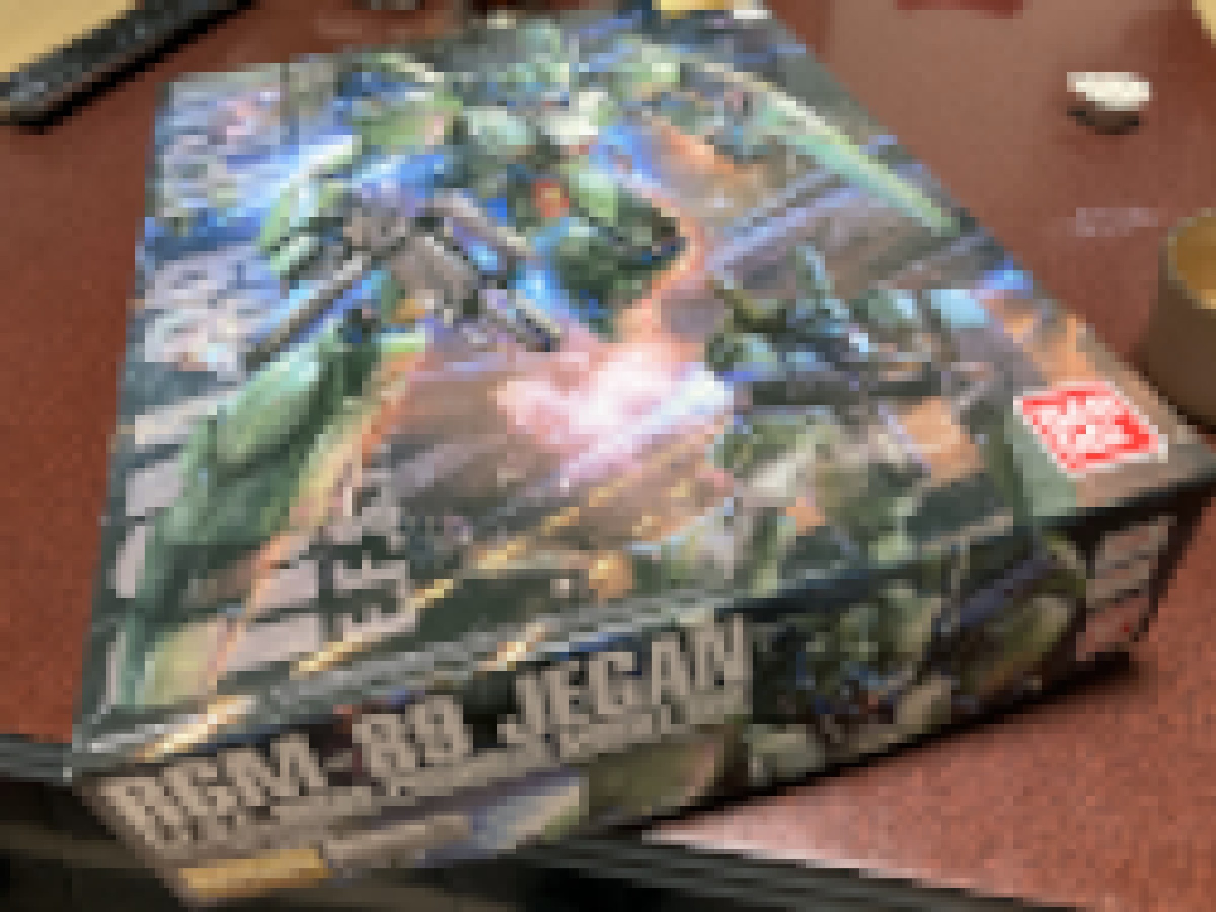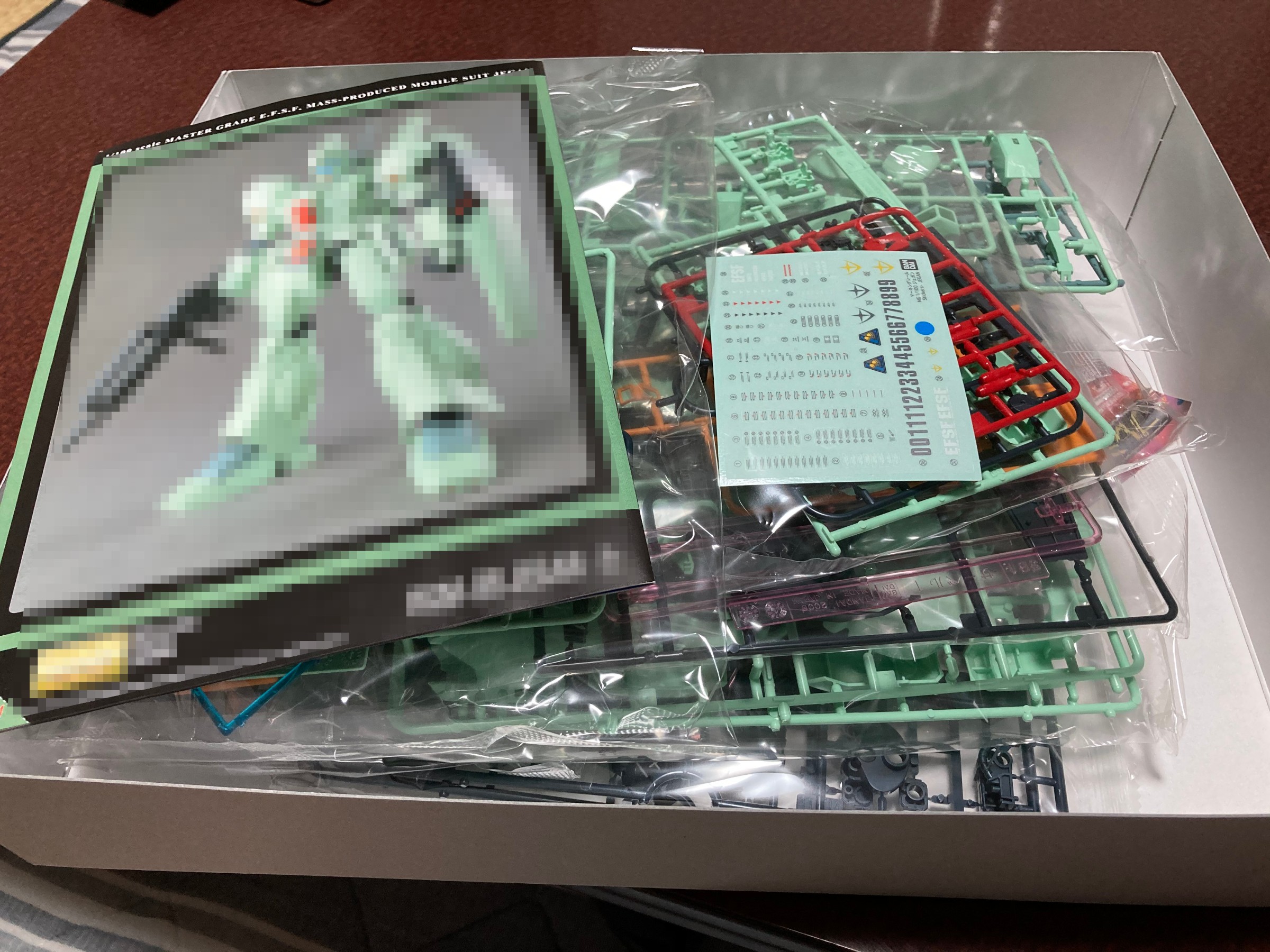 大人の事情でモザイク処理してありますが、連邦軍のモビルスーツ「ジェガン」のMG(マスターグレード)です!